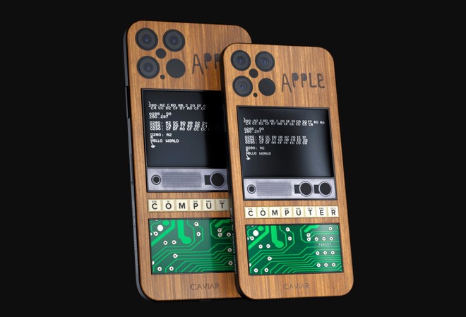 A far lievitare il prezzo dello smartphone questa volta non è un'appariscente placcatura in oro, ma la scelta di omaggiare l'Apple 1 - il primo computer prodotto da Apple - incastonando nella scocca in legno dello smartphone, che richiama quella dell'Apple 1, un frammento della scheda madre originale. A completare il tutto c'è un elemento in titanio con una finitura lucida che ricorda il monitor del computer, poco più in basso una fila di tasti e in alto la scritta Apple, con i caratteri realizzati da un bambino dell'asilo ispirati a quelli originali.